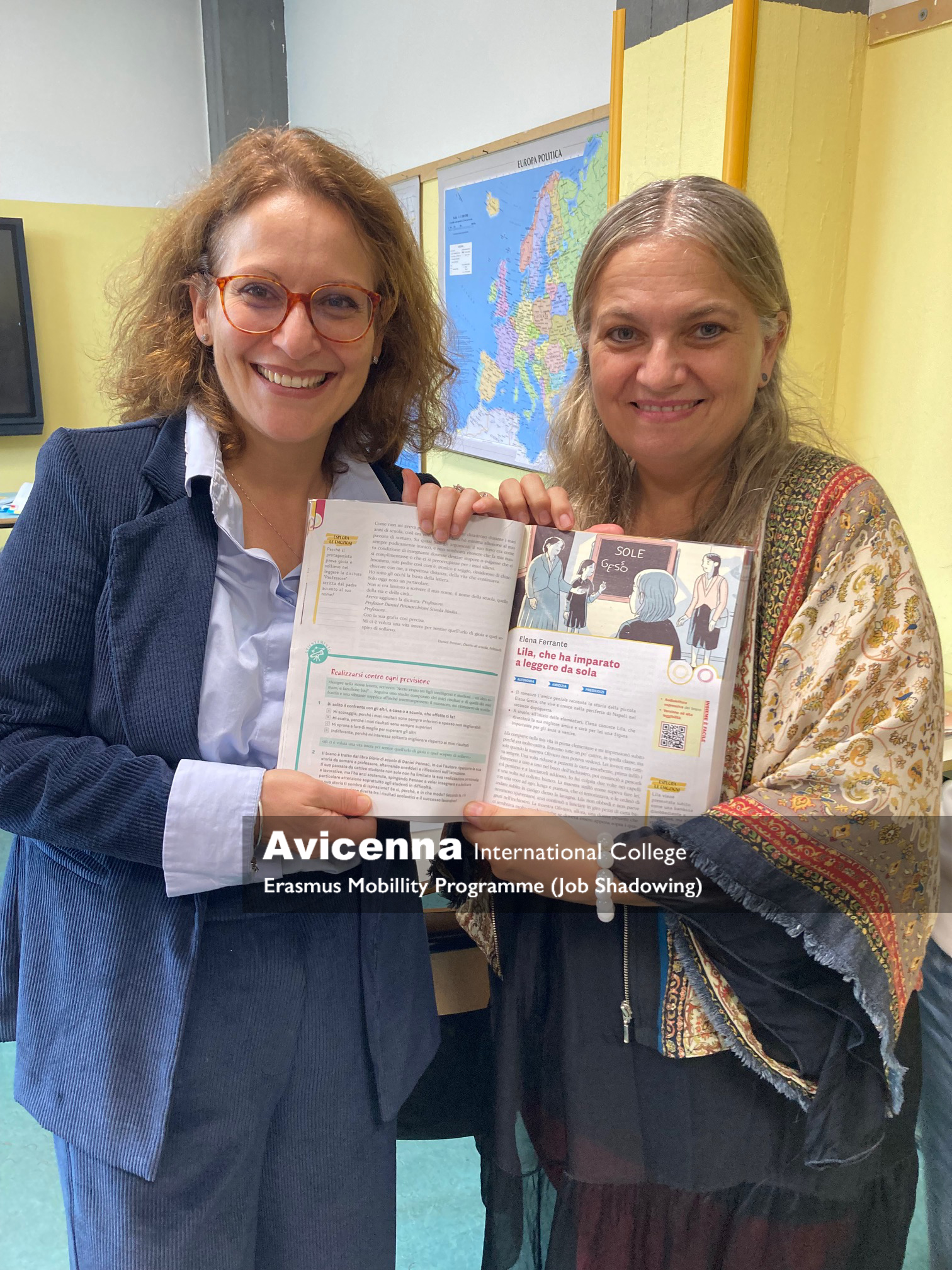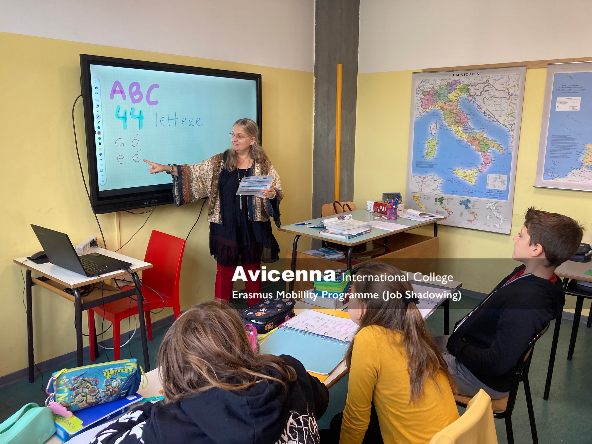 On the third day, I was very lucky to shadow an Italian Language class as well an Italian Literature class, both taught by Ms. Silia. Before the class started, Ms. Silia showed me their local „Kréta” system called Appello, which works the same way as our platform in Hungary. The topic of the Italian class with 6th graders (11-year-old students) was accent marks (L’accento). The teacher used the smart board throughout the class. After the discussion of accent marks in Italian, I had a chance to give a presentation about the Hungarian alphabet and Hungarian accent marks in Italian. It was a great suprise to be present in an Italian Literature class when the topic was an excerpt from Elena Ferrante’s famous novel series. She happens to be my favourite Italian author.