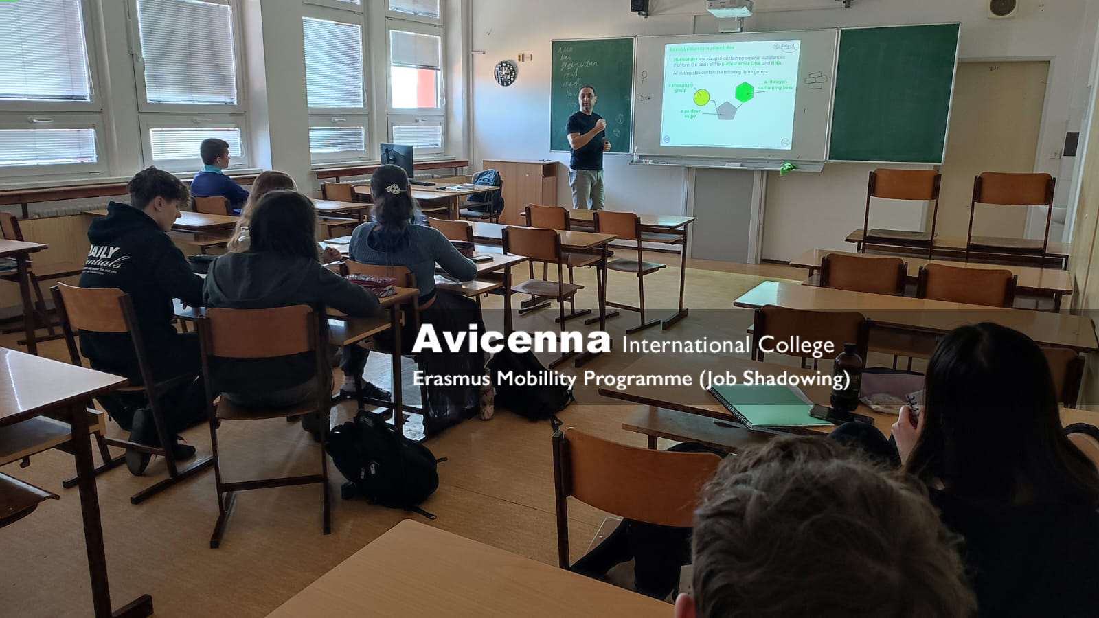 On the last day, Jirka, the physics teacher showed me all different sorts of equipment that they use in their lab session and this time he had his lab session on forces and inertia. He had hands-on experiments in which students tested them in groups by rotation so they all get the chance to work on each one. On this day, I had the privilege to teach two biology lessons which students followed in a close way, however I noticed for some the English language was a bit of an obstacle although for many it did not pose any problem. I really liked the use of the smart board where you can draw easily on the board and make it easier for students to have an interactive lesson. The only odd thing which stood out for me was the phones with the students which were not allowed to be used by the rules, however in many instances I noticed students candidly using their phones.